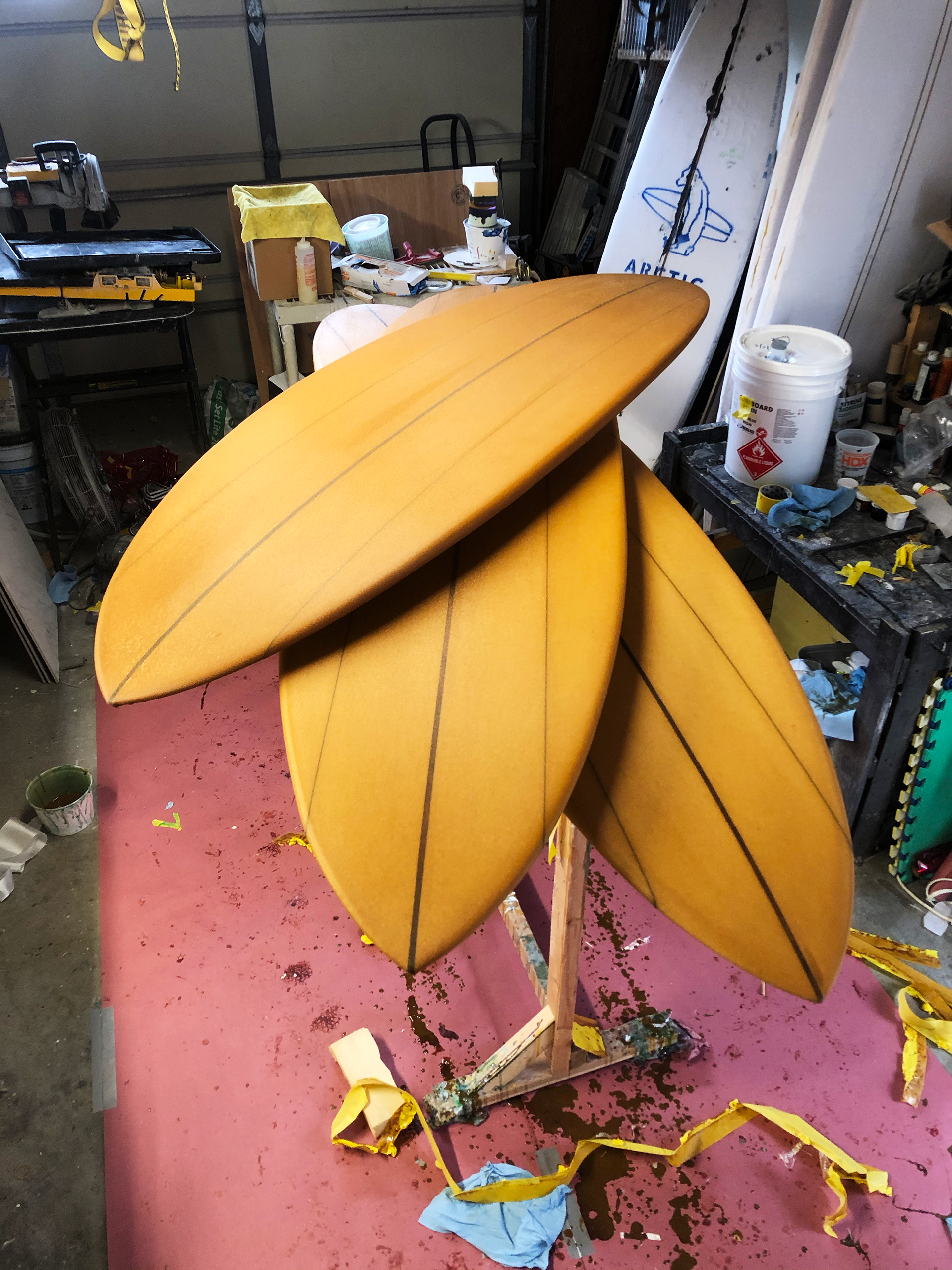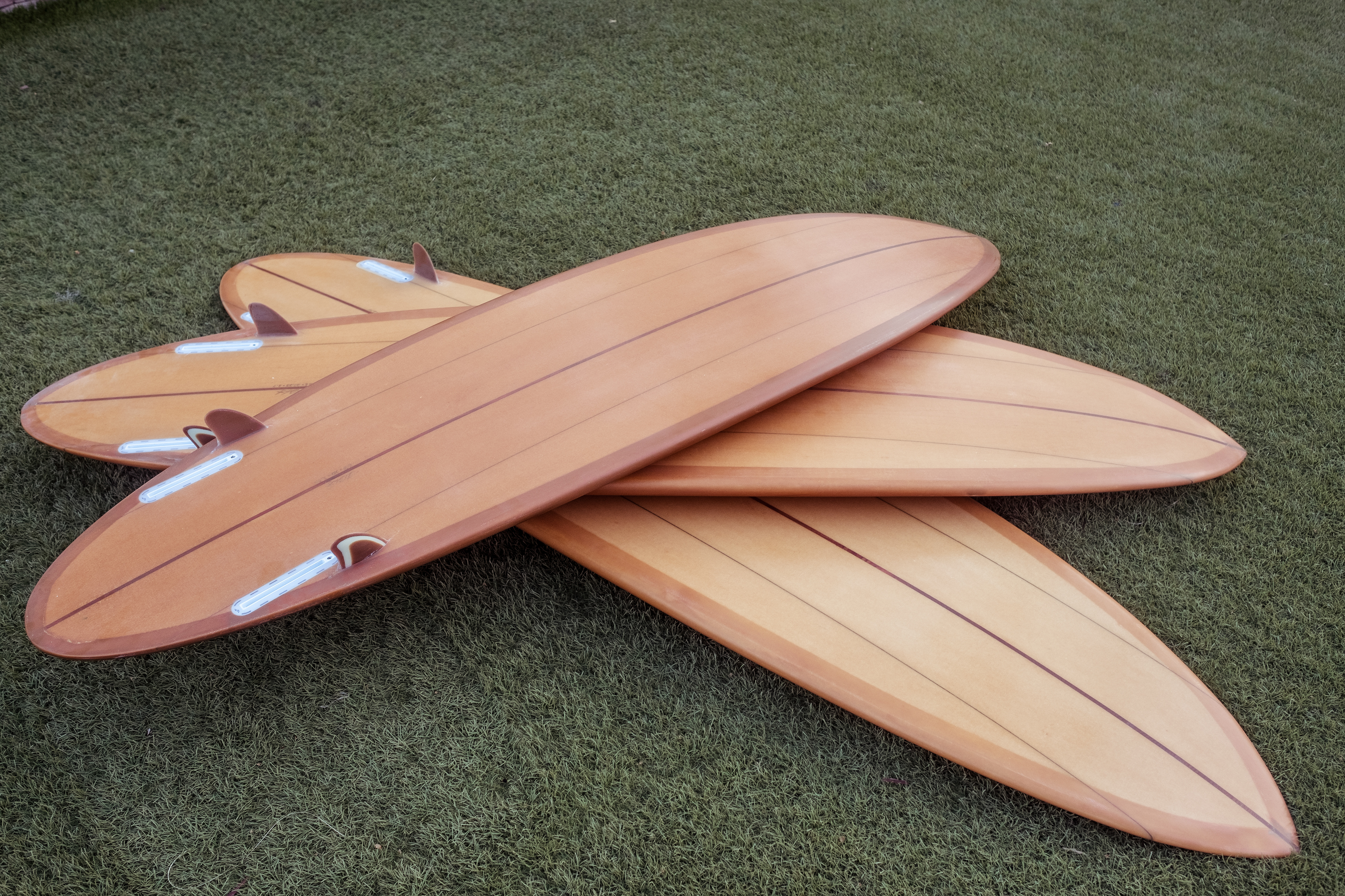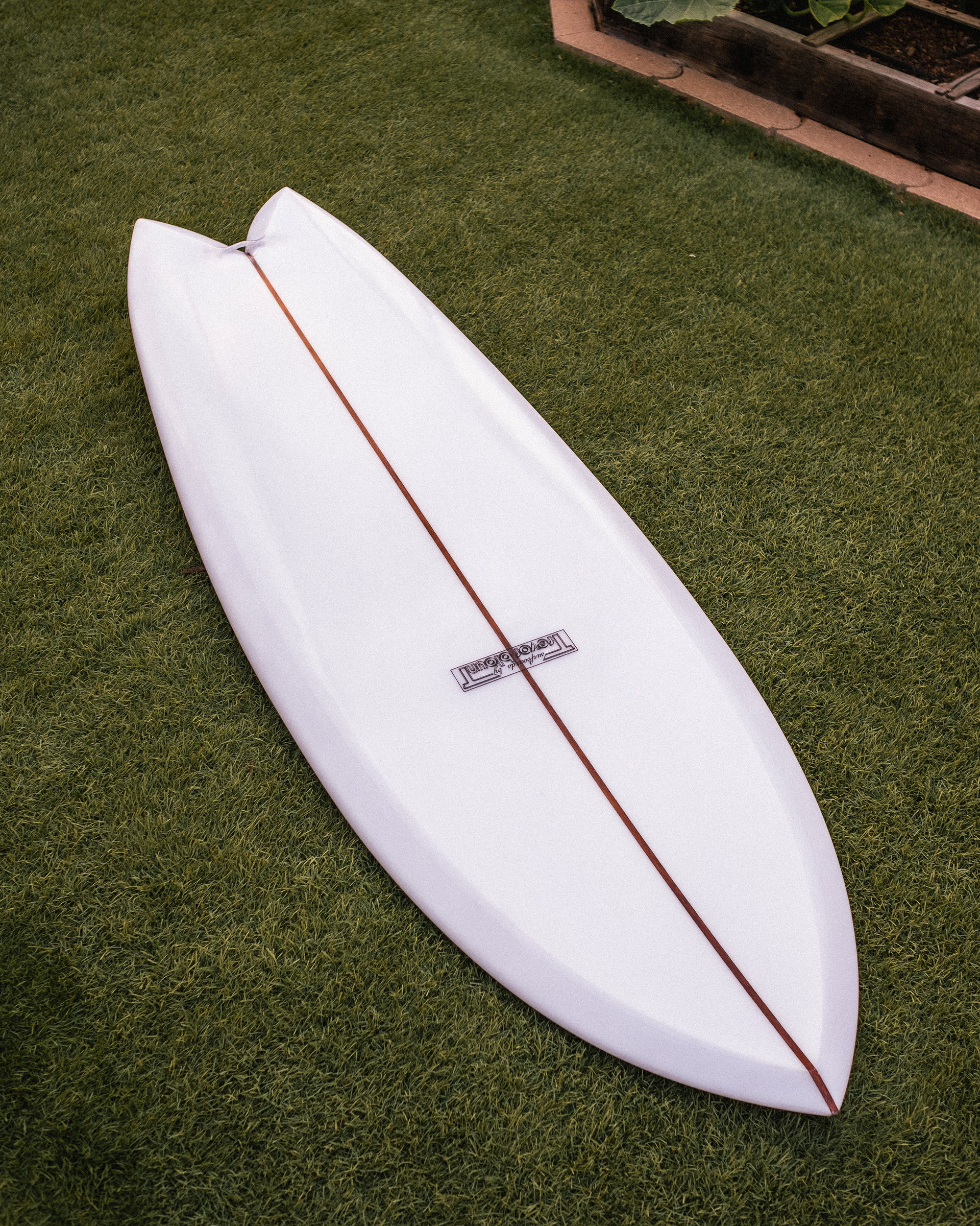Shaped, glassed and sanded by one pair of hands in San Diego, CA. Revisiting retro designs.